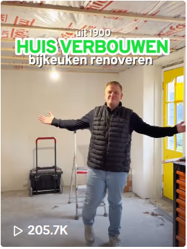 Maik Beusink kreeg in juli 2021 de sleutel van mijn kluswoning uit 1900 in Winterswijk. Sindsdien deelt hij zijn renovatieavonturen onder de naam @Uniekhuis op Instagram en TikTok. Met korte video’s tussen de 30-180 seconden toont hij diverse klussen, van behang verwijderen tot het installeren van elektra.